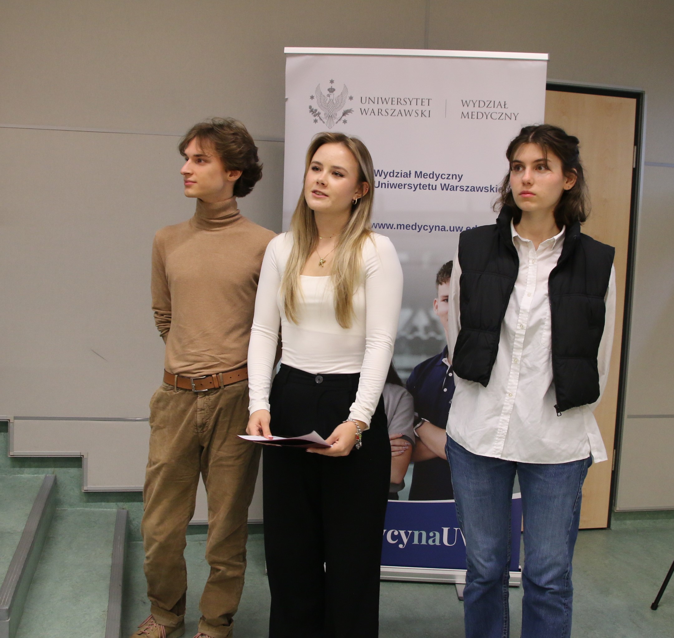 – Zanim zaczniecie pomagać innym ludziom, czekają Was lata ćwiczeń i praktyk. Nie jesteście w tym sami. Jesteśmy po to, aby Was wspierać. Każde małe zwycięstwo będzie prowadziło do pracy stanowiącej Waszą pasję. Studia to nie tylko nauka, ale też poznawanie siebie – mówiła Karolina Jagielska, przewodnicząca Samorządu Studentów Wydziału Medycznego UW, dodając: – Angażowanie buduje społeczność i więzi międzyludzkie oraz prowadzi do nawiązywania wielu znajomości, niektórych nawet na całe życie.